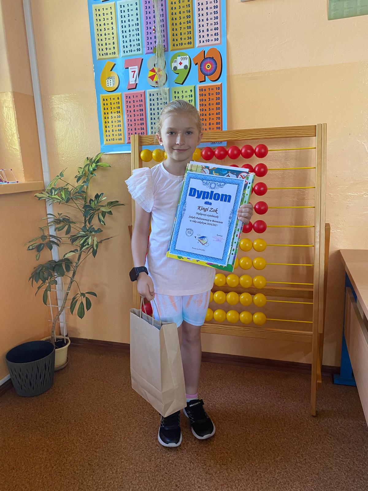 W roku szkolnym 2024/25 nasza uczennica Kinga Zok została zwyciężczynią w Konkursie Powiatowym Najaktywniej Czytający Trzecioklasista - edycja 2024/2025. Na swoim koncie bibliotecznym od miesiąca września 2024 roku do końca maja 2025 roku zgromadziła największą liczbę przeczytanych książek ze wszystkich uczniów klas trzecich zgłoszonych do konkursu przez nauczycieli bibliotekarzy w powiecie lublinieckim .