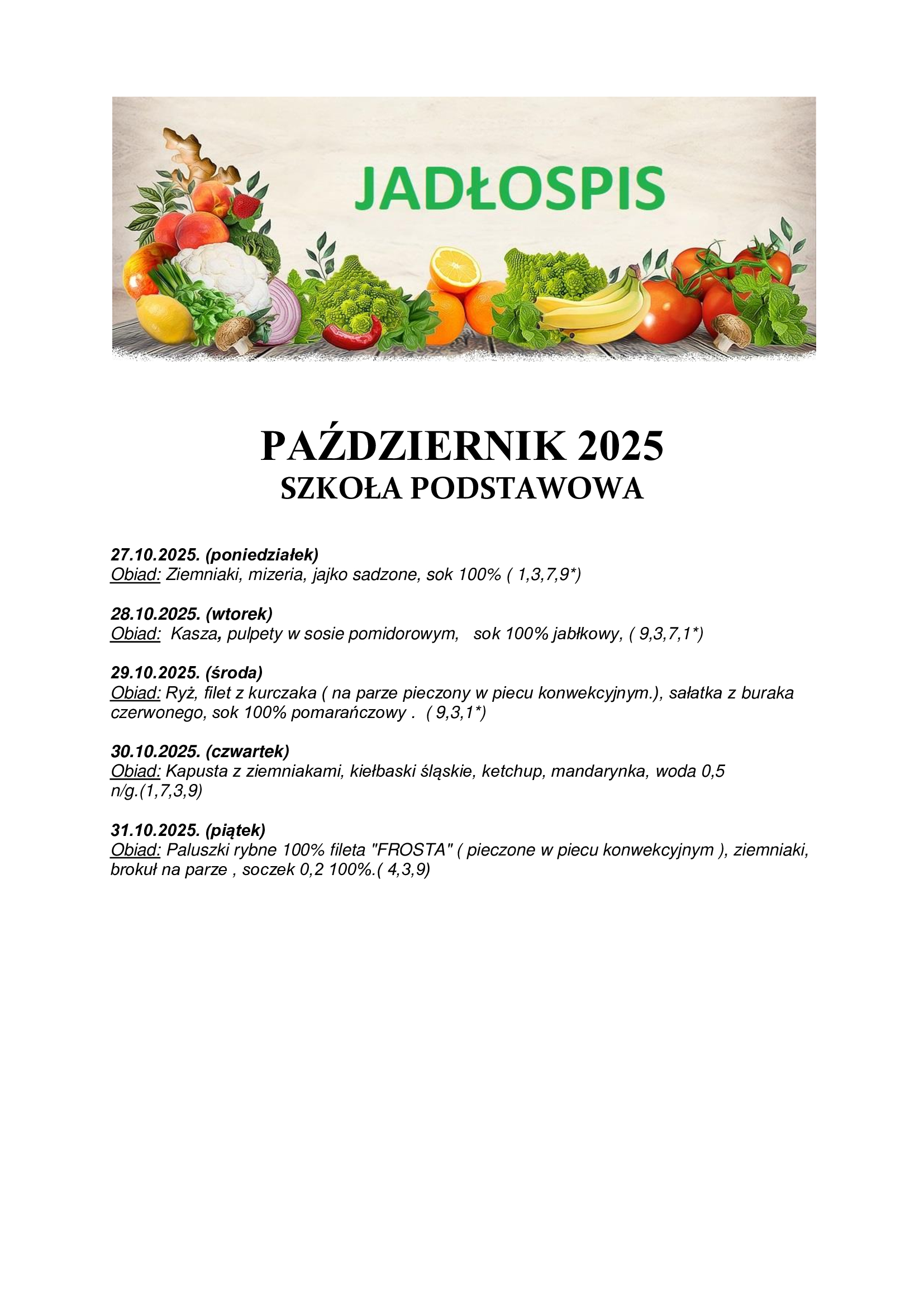 Jadłospis SP 27.10.2025 r. - 31.10.2025 r.