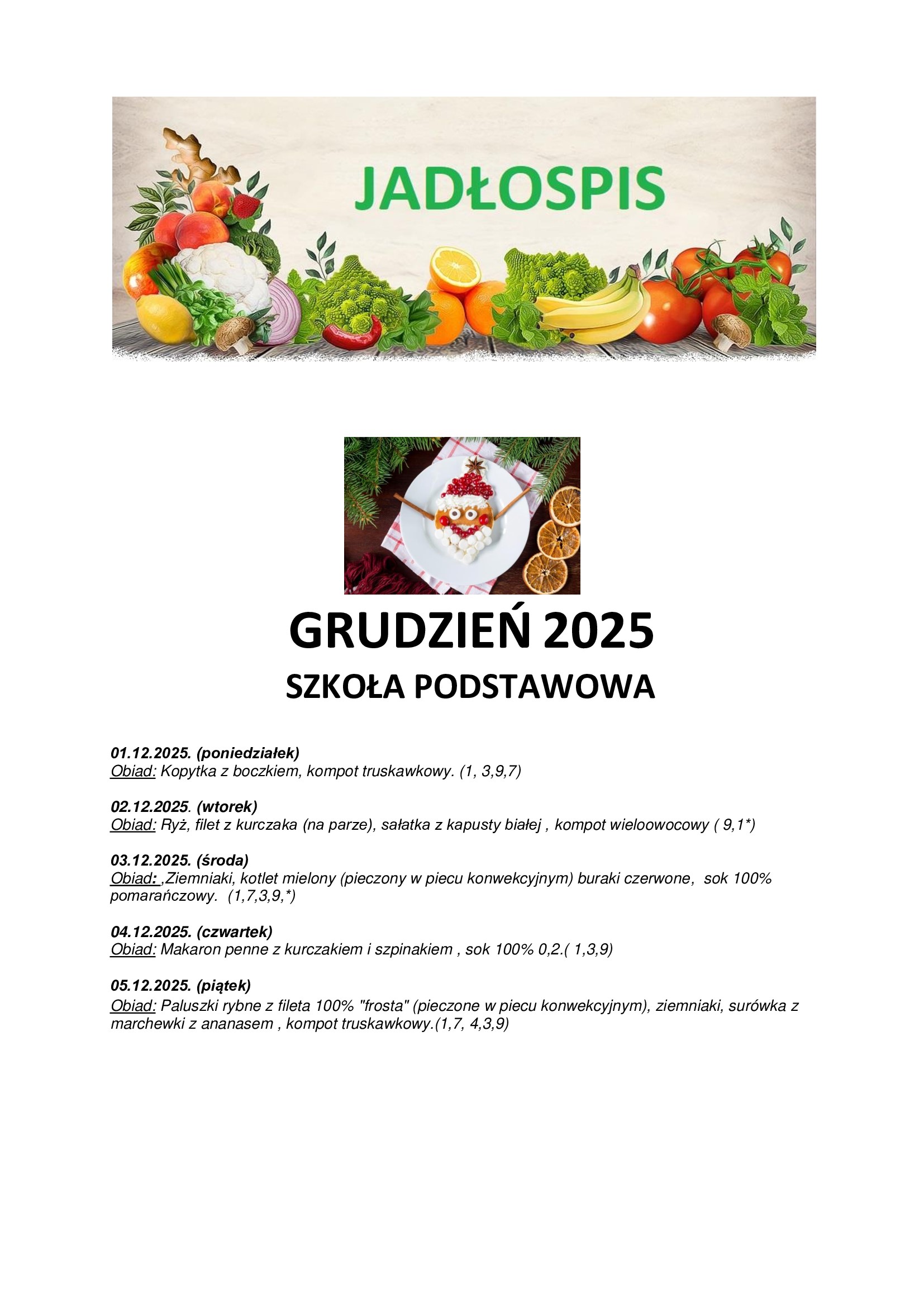 Jadłospis SP 01.12.2025 r. - 05.12.2025 r.