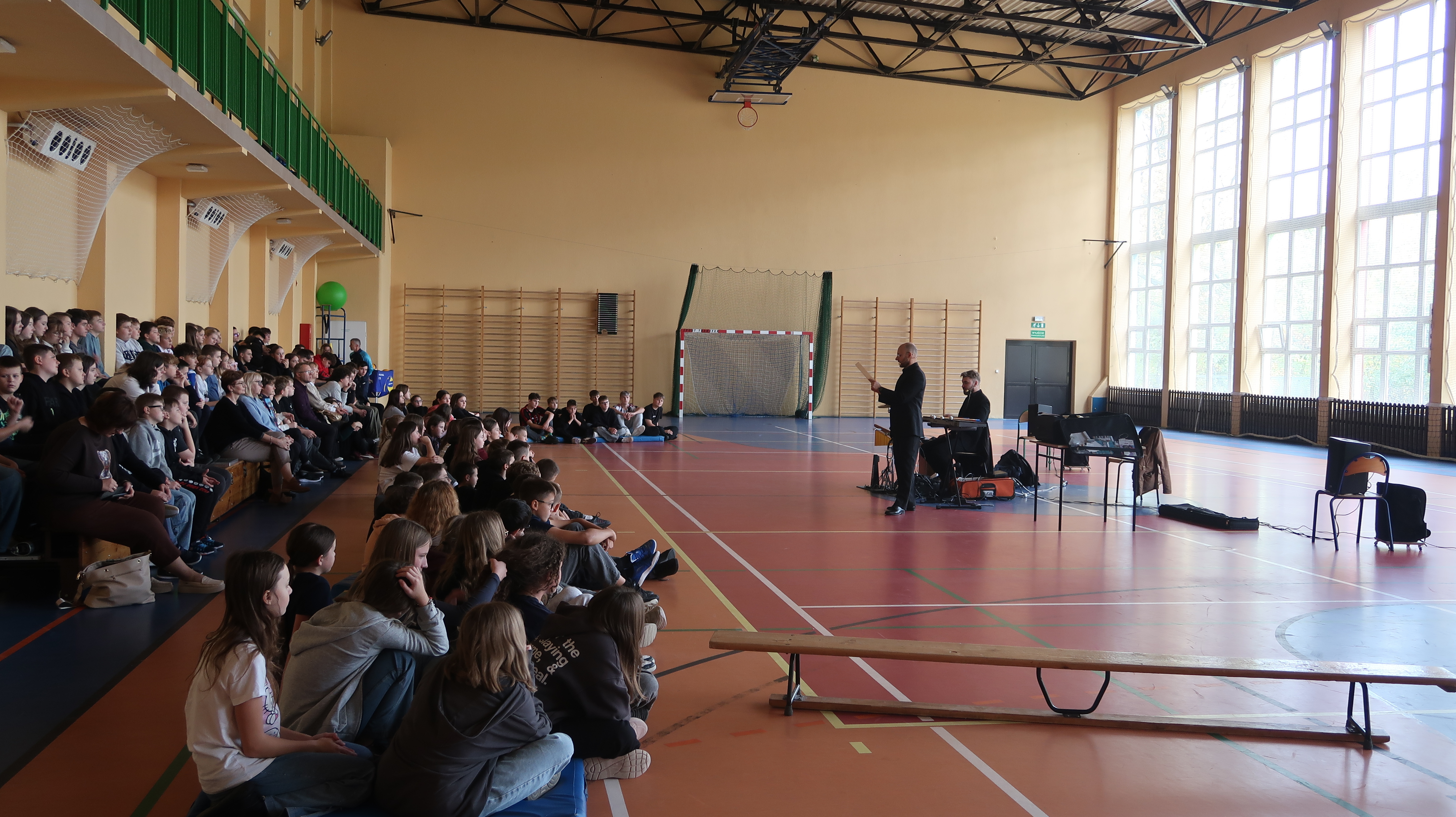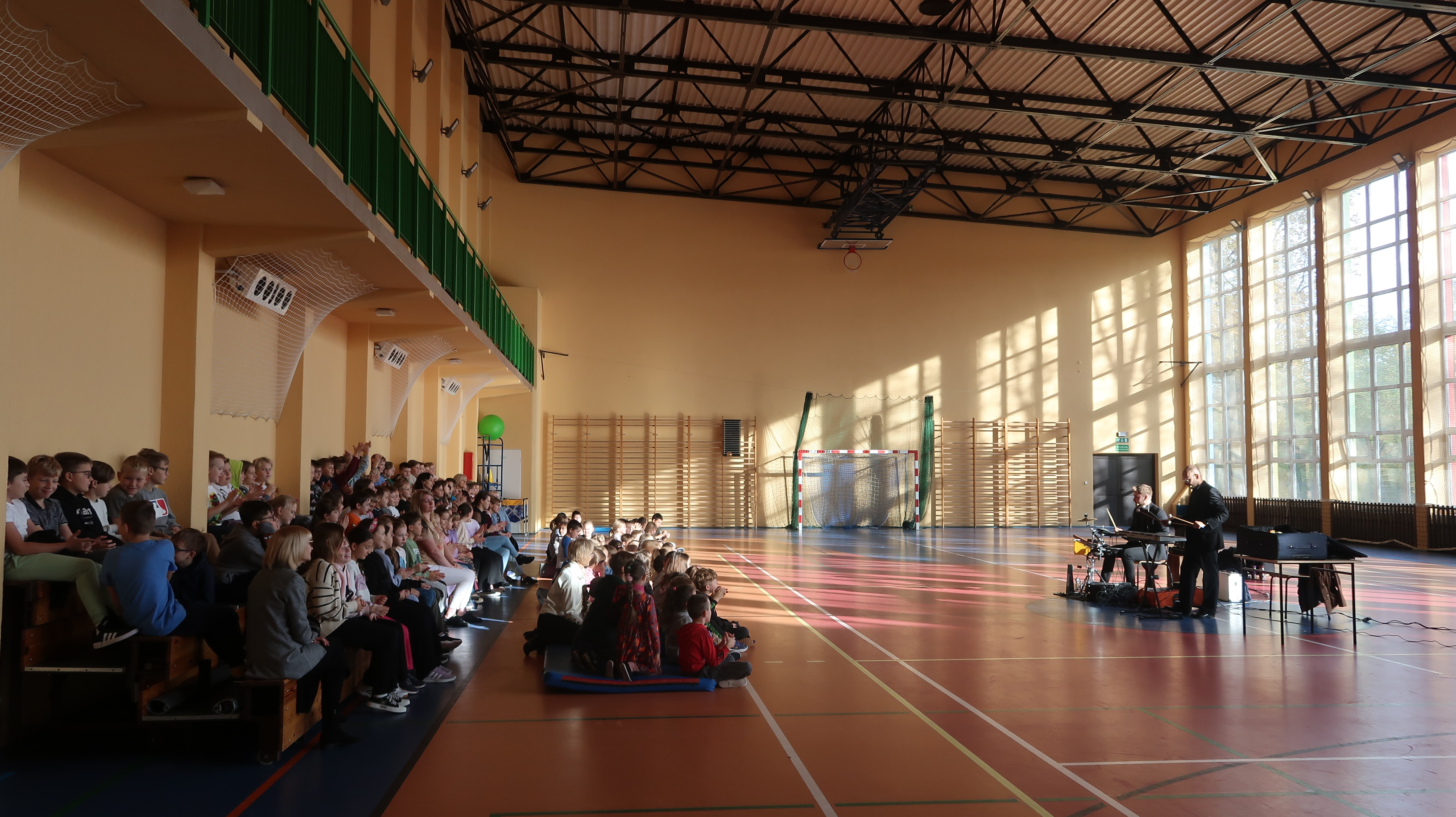 Muzycy w ciekawy i przystępny sposób przekazali uczestnikom ważne treści dotyczące współpracy, szacunku wobec innych, empatii, panowania nad emocjami oraz unikania agresji i przemocy. Przez rytm i wspólne muzykowanie pokazali, że w grupie – podobnie jak w orkiestrze – ważna jest harmonia, wzajemne słuchanie się i współdziałanie. Uczniowie z dużym zaangażowaniem uczestniczyli w koncercie, aktywnie włączając się w zabawy rytmiczne, klaskanie i wspólne tworzenie muzyki. Nie zabrakło również humoru i ciekawostek o instrumentach, co sprawiło, że wydarzenie przebiegło w radosnej i twórczej atmosferze. Koncert spotkał się z bardzo pozytywnym odbiorem zarówno wśród uczniów, jak i nauczycieli.