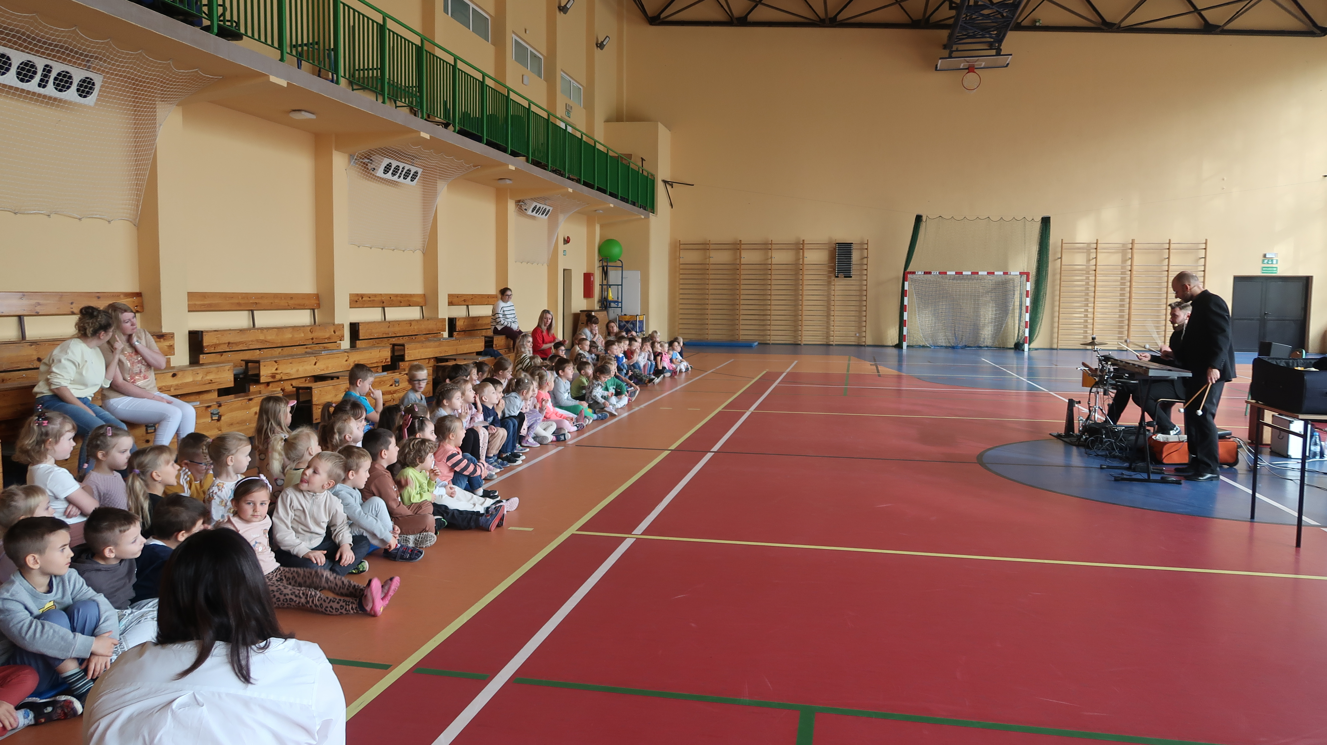 Podczas koncertu uczniowie i przedszkolaki mieli okazję poznać różnorodne instrumenty perkusyjne pochodzące z wielu zakątków świata. Występ miał nie tylko walor artystyczny, ale również profilaktyczny i wychowawczy.