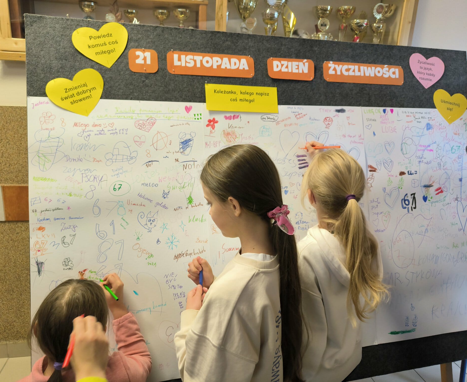 21 listopada społeczność naszej szkoły obchodziła Dzień Życzliwości. Z tej okazji przygotowano kolorową gazetkę tematyczną oraz wystawę prac uczniów, uczniowie przedstawili w nich, jak ważne jest okazywanie sobie dobroci na co dzień oraz jak drobne gesty mogą zmienić świat na lepszy.