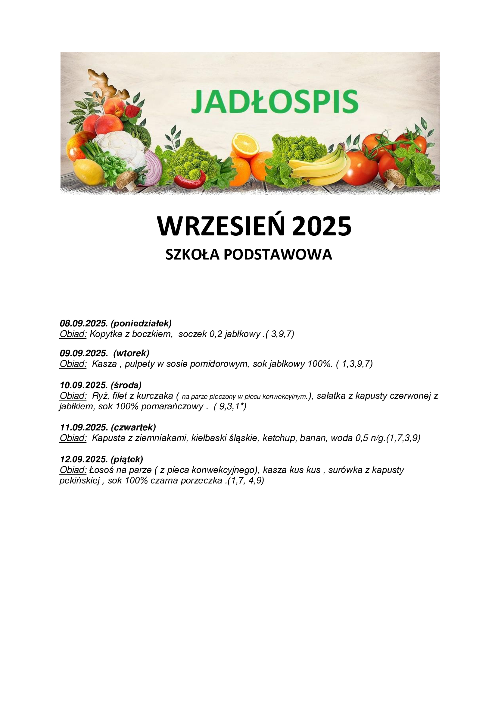 Jadłospis SP 08.09.2025 r. - 12.09.2025 r.