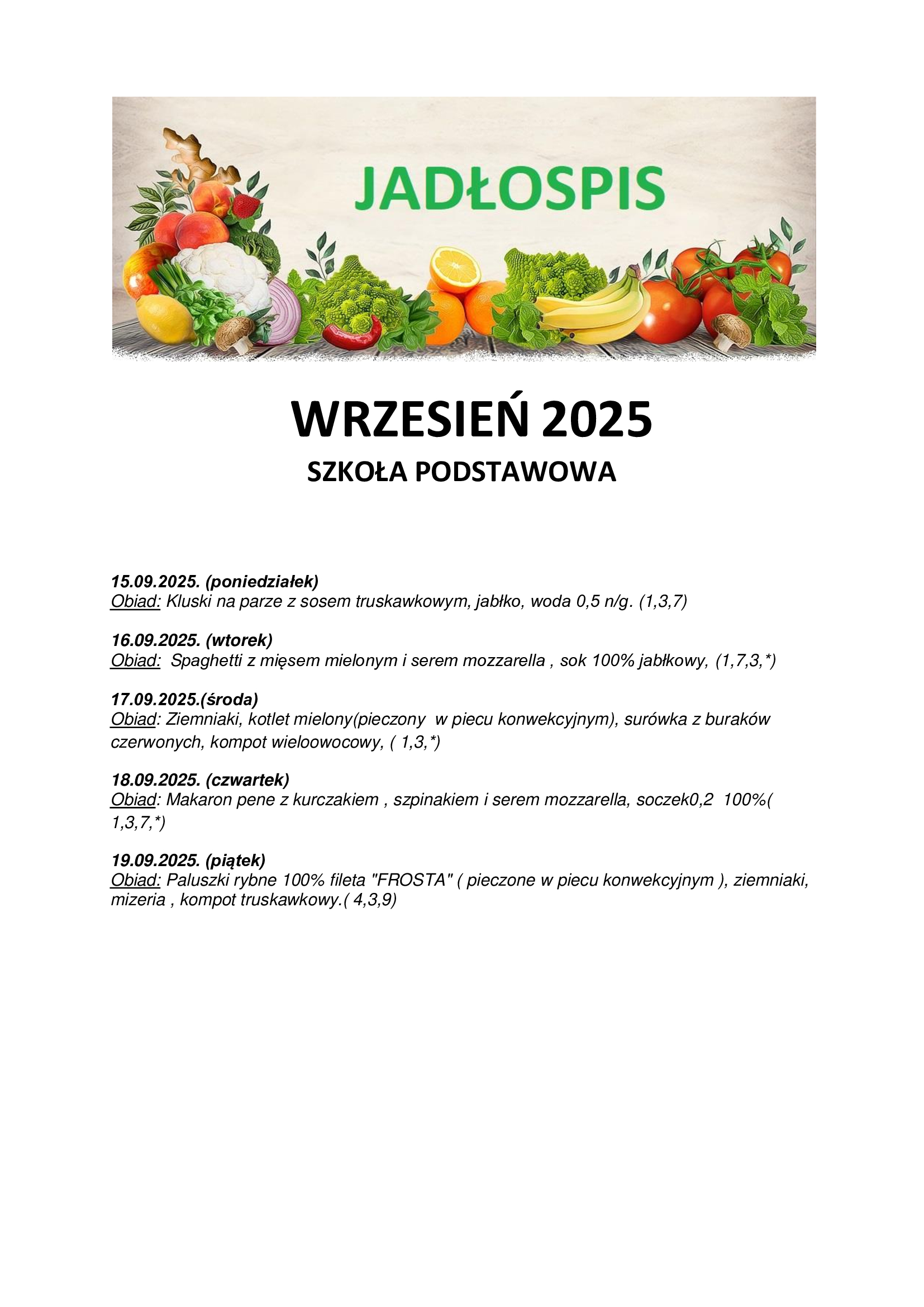 Jadłospis SP 15.09.2025 r. - 19.09.2025 r.
