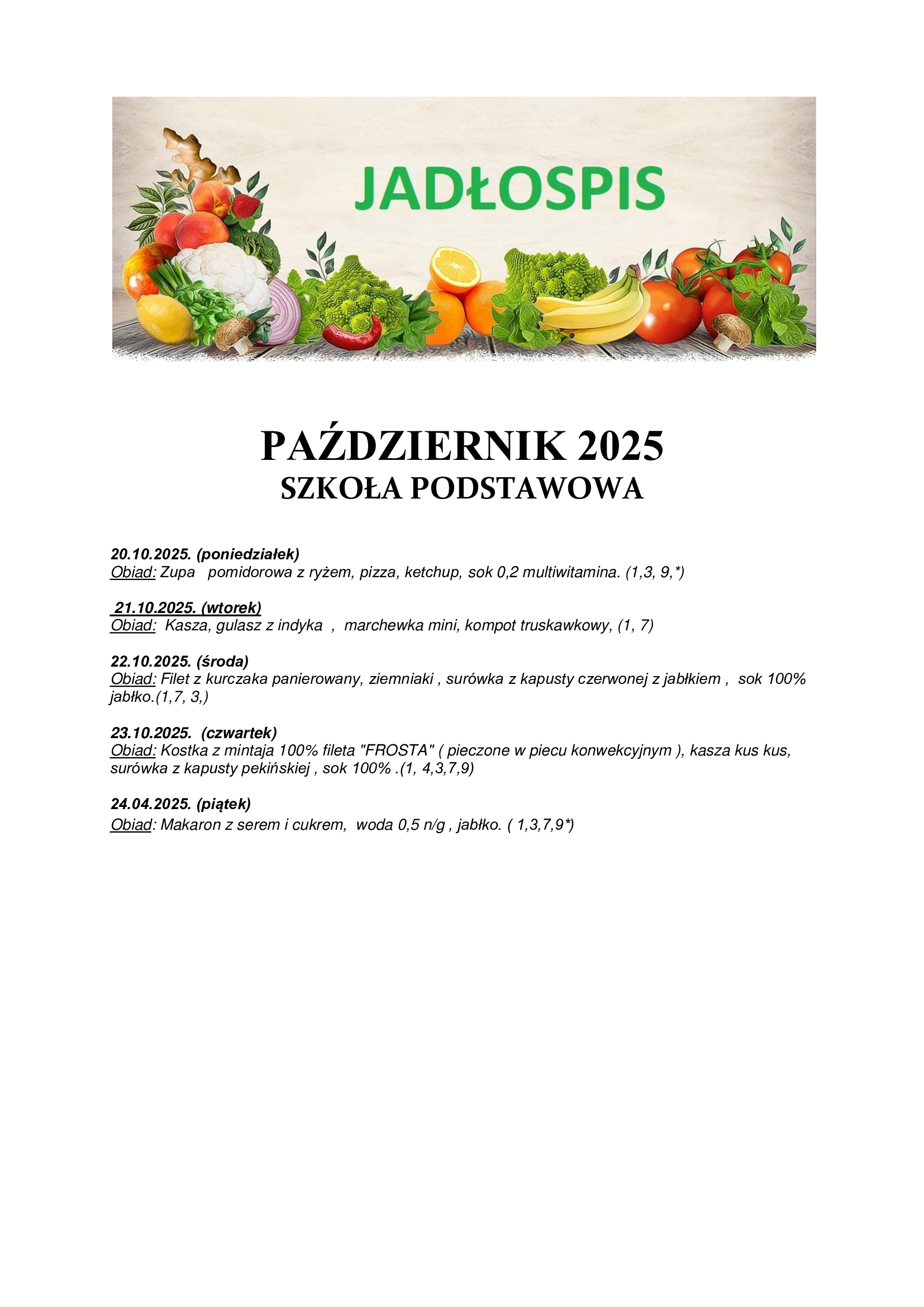 Jadłospis SP 20.10.2025 r. - 24.10.2025 r.