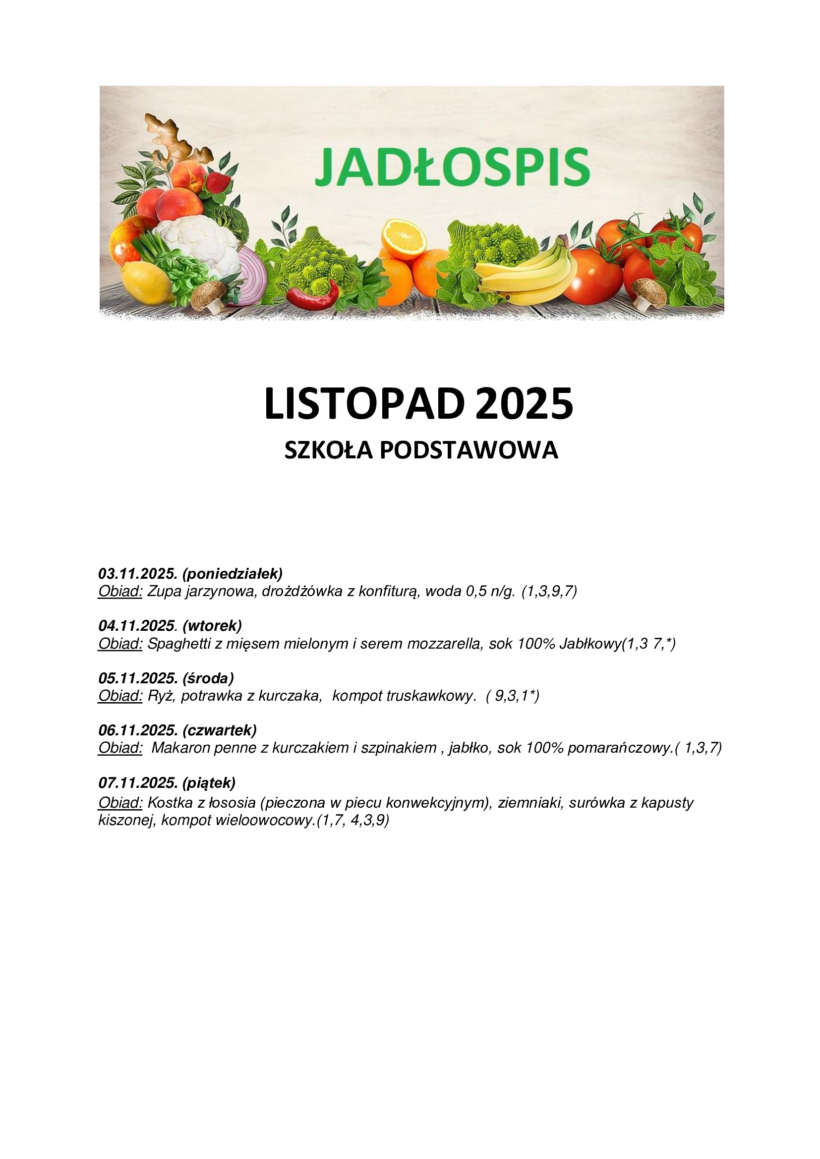 Jadłospis SP 03.11.2025 r. - 07.11.2025 r.