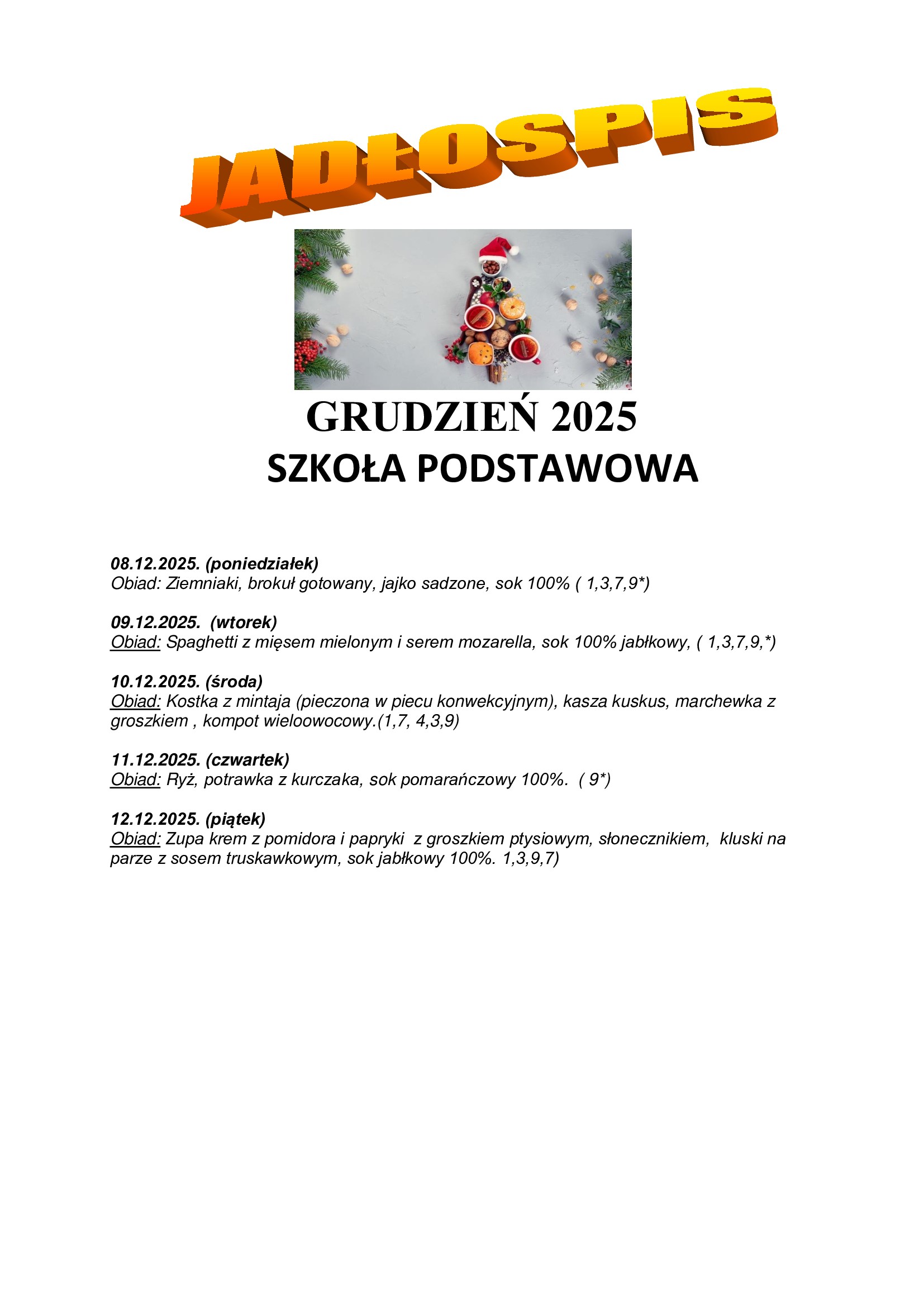 Jadłospis SP 08.12.2025 r. - 12.12.2025 r.