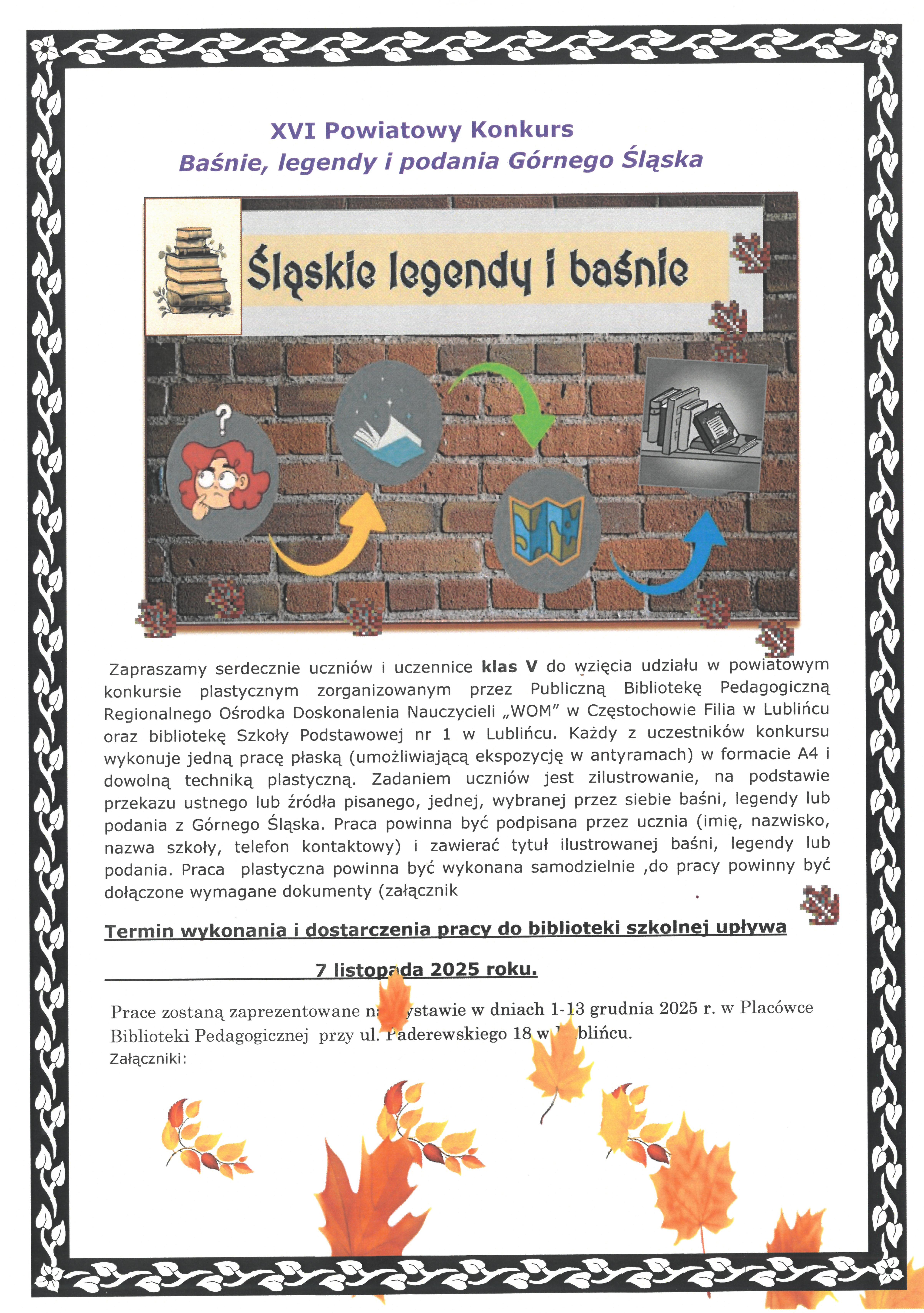 Czytaj więcej: XVI POWIATOWY KONKURS PLASTYCZNY BAŚNIE, LEGENDY I PODANIA GÓRNEGO ŚLĄSKA (3)