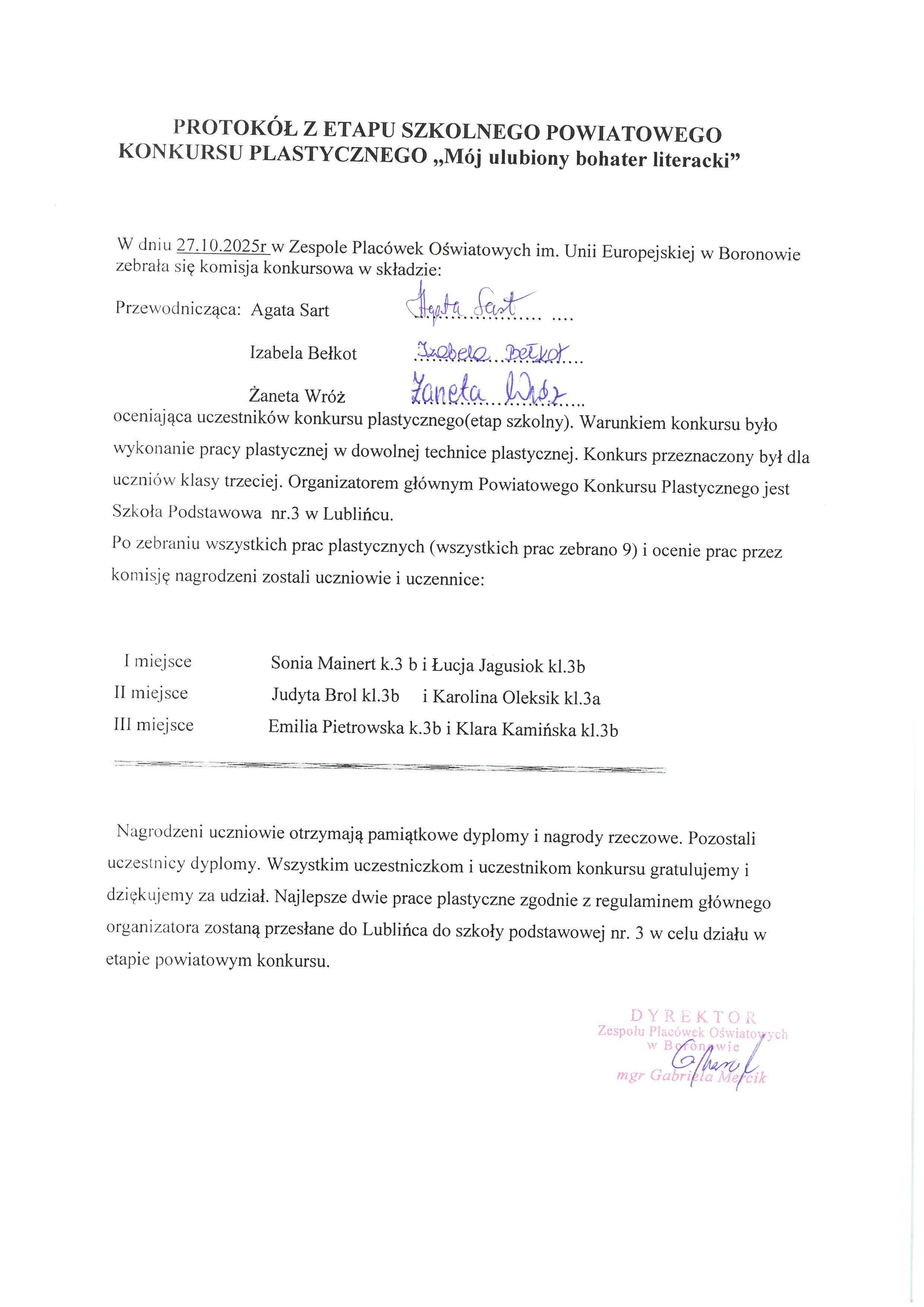 Konkurs Plastyczny„Mój ulubiony bohater literacki” - etap szkolny